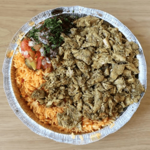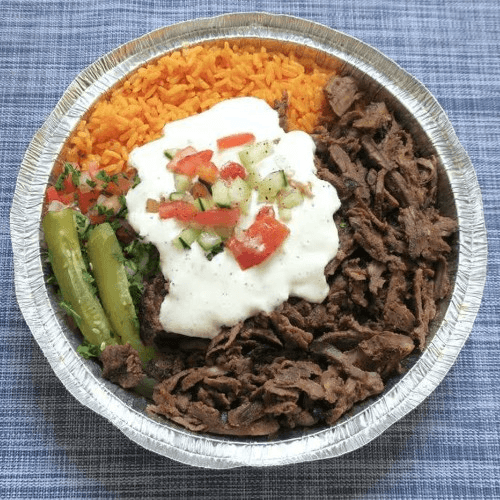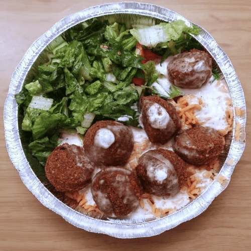 Your choice of chicken, beef or falafel with spicy or regular rice topped with tzatziki sauce